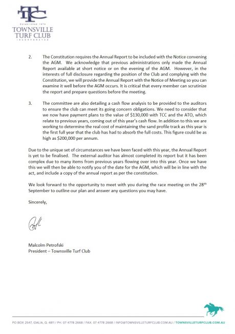 regarding the postponement of the Townsville Turf Club AGM 2017